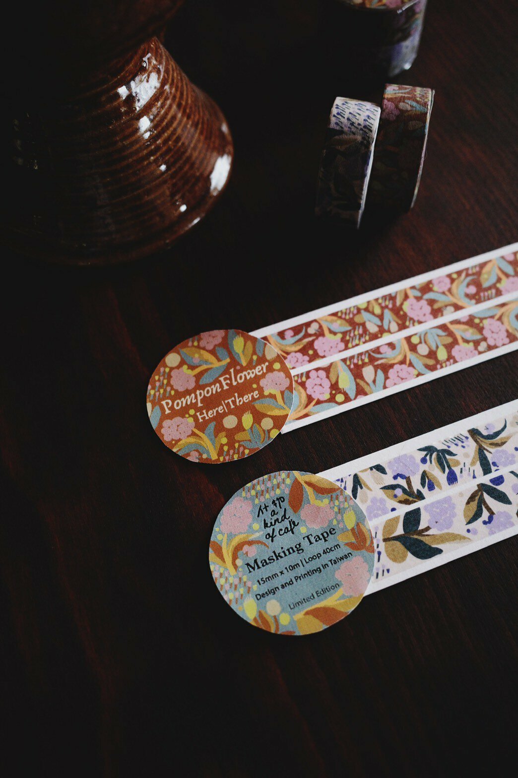 蓬蓬花紙膠帶組合,有印花原型的藍紫色,在這裡展現了纖細的當下與茂盛的可能