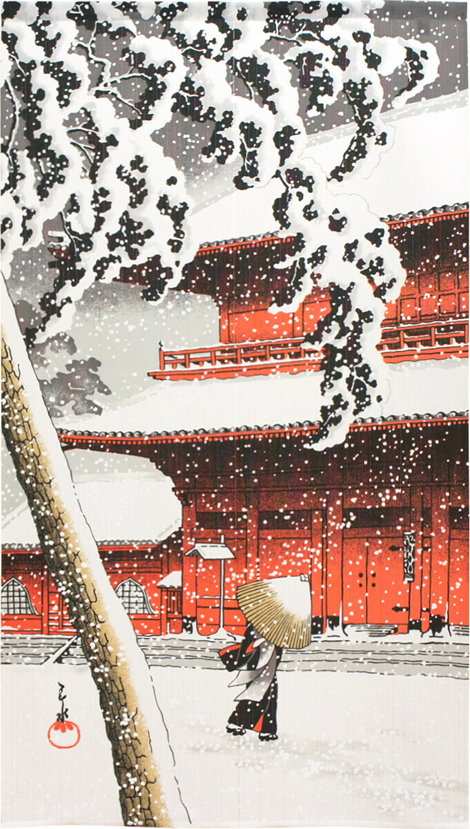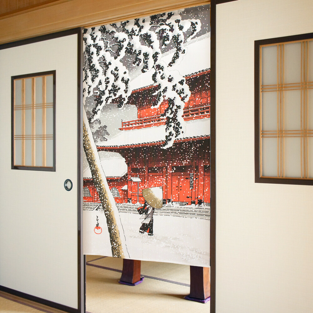 浮世繪 日本雪景 長暖簾 門簾 150cm|日本製 のれん工房