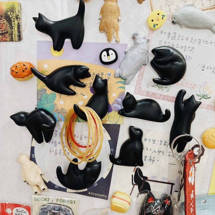 尾巴是鉤狀,可以掛上輕巧物品,例如橡皮筋、鑰匙或是塑膠袋等隨手收納小物,增添實用性。