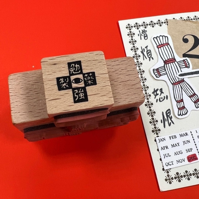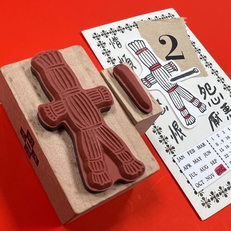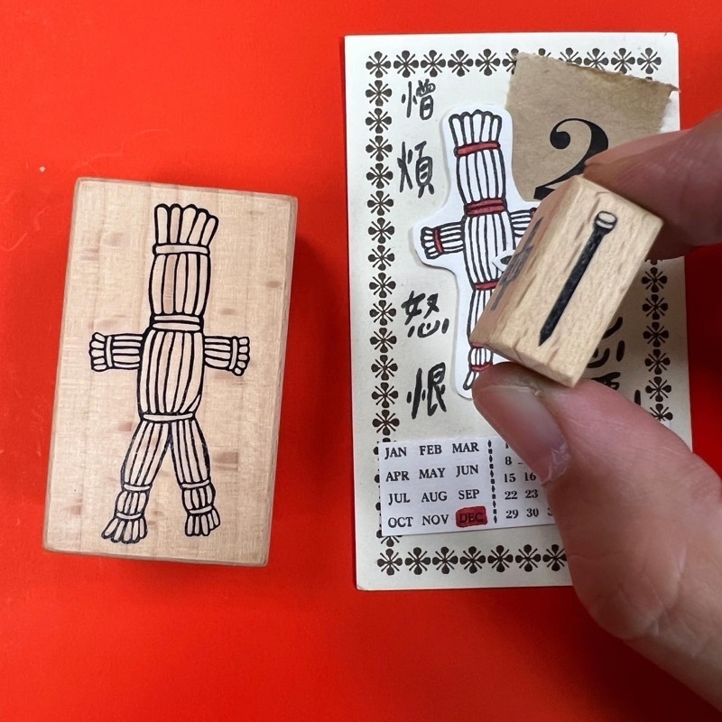 草人尺寸3*5cm、釘子尺寸1*2.1cm,櫸木取手、印面已裁型,紅色彈性繩包裝,詛咒感十足!