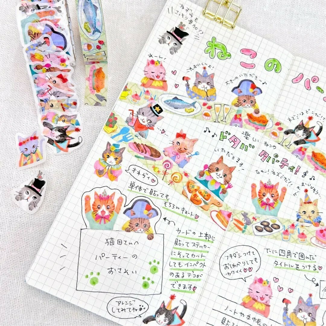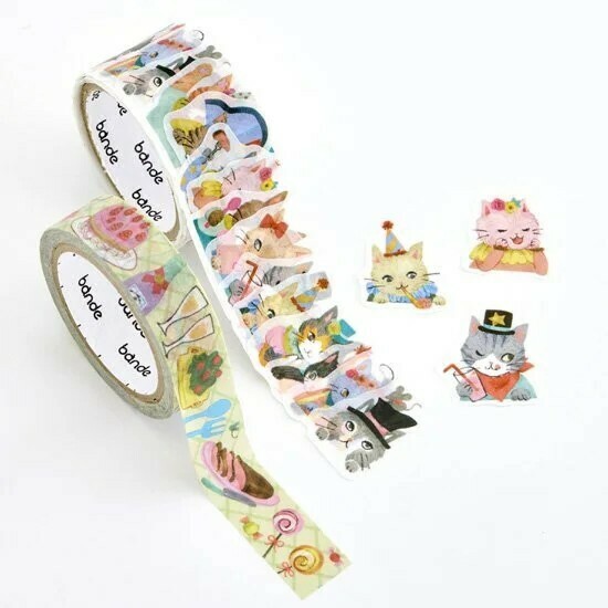 貓咪派對 2入 捲狀貼紙 和紙膠帶 |日本Bande