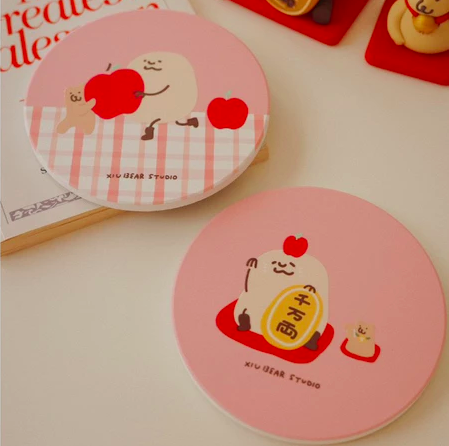 杯墊表面採用高溫燒製陶瓷,耐熱防水,浮雕紋路立體,
