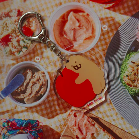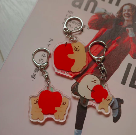 壓克力吊飾特別設計成小熊與泥跟蘋果的多樣搭配