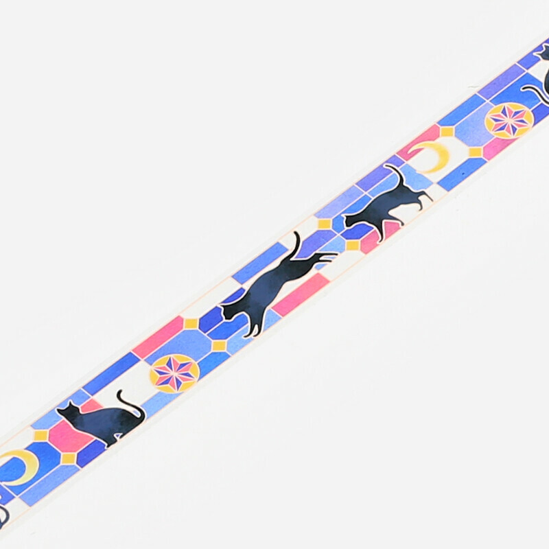 月之黑貓 花窗玻璃系列 PET透明膠帶|日本BGM