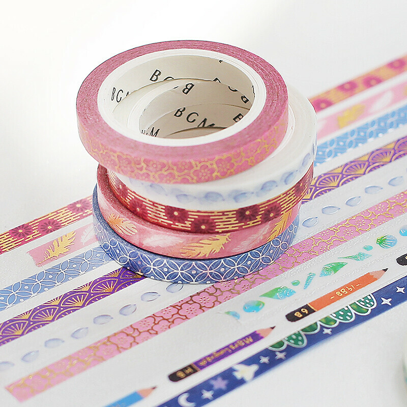 將這些紙膠帶、印章和金箔貼紙集合起來