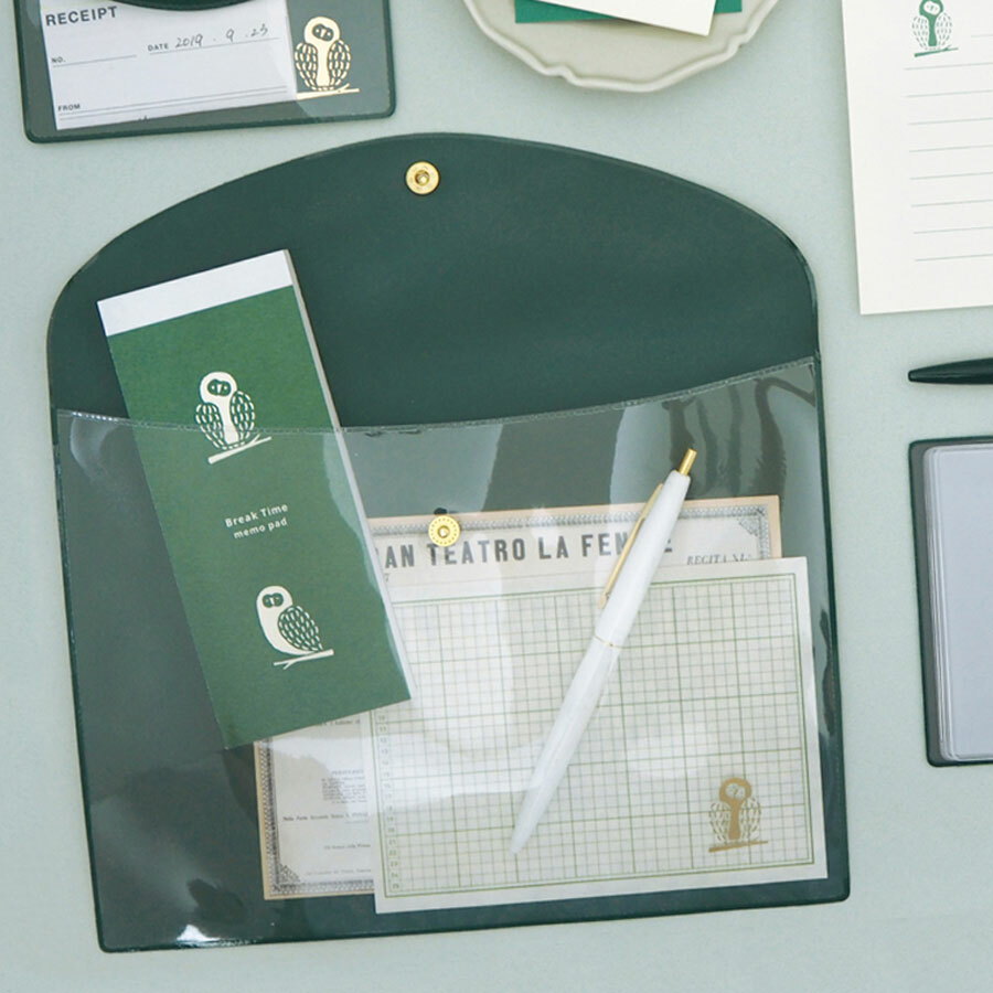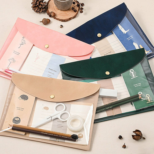 可容納 A5 尺寸文件的收納袋。例如筆記本、鋼筆和便簽。