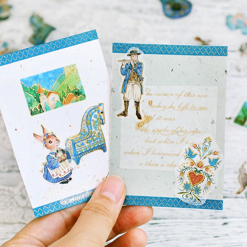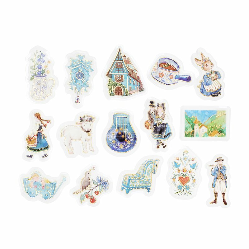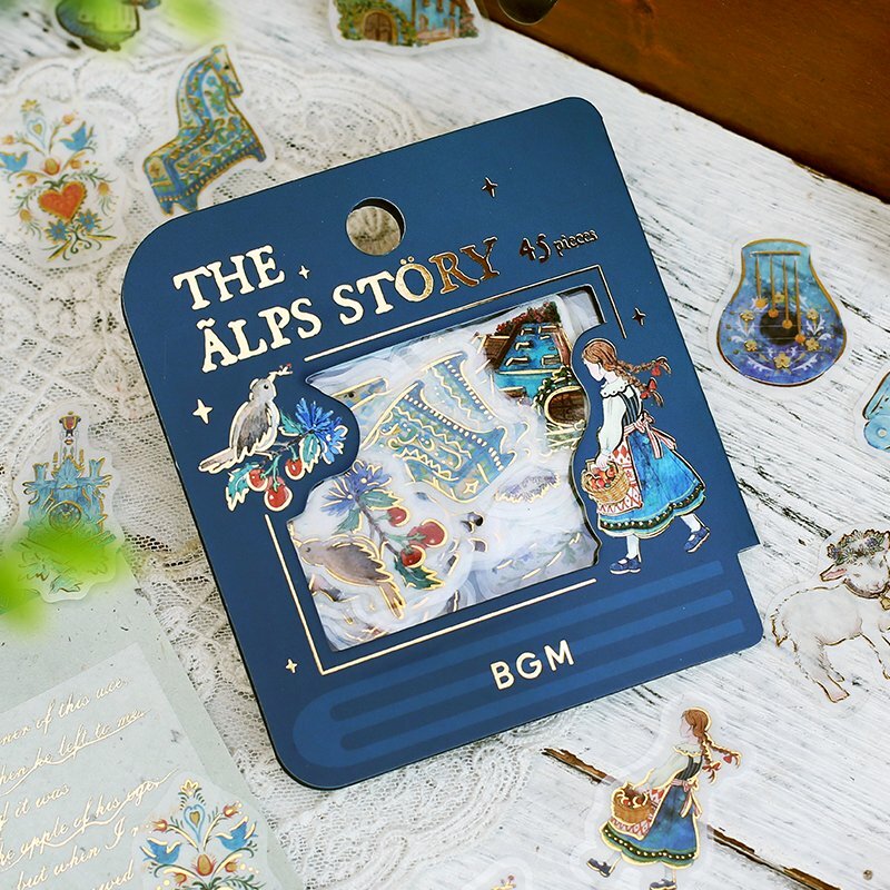 藍色_阿爾卑斯山故事系列 45枚 箔押 和紙貼紙包|日本 BGM