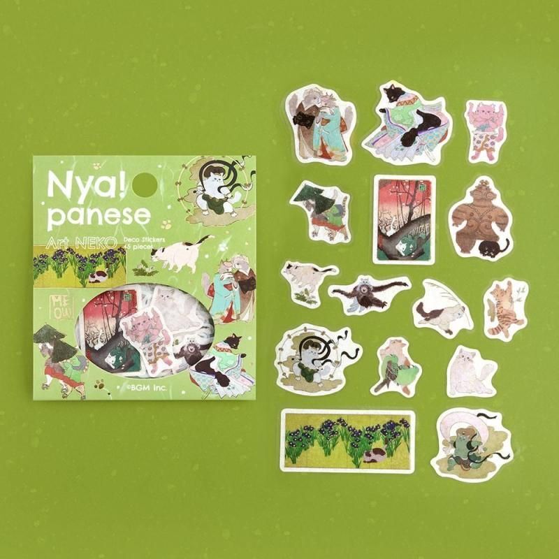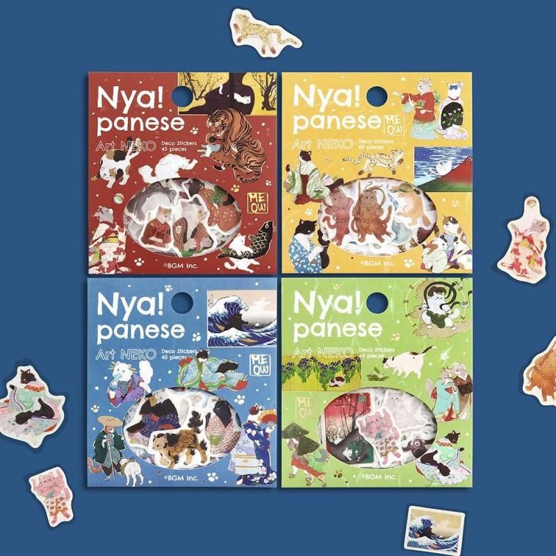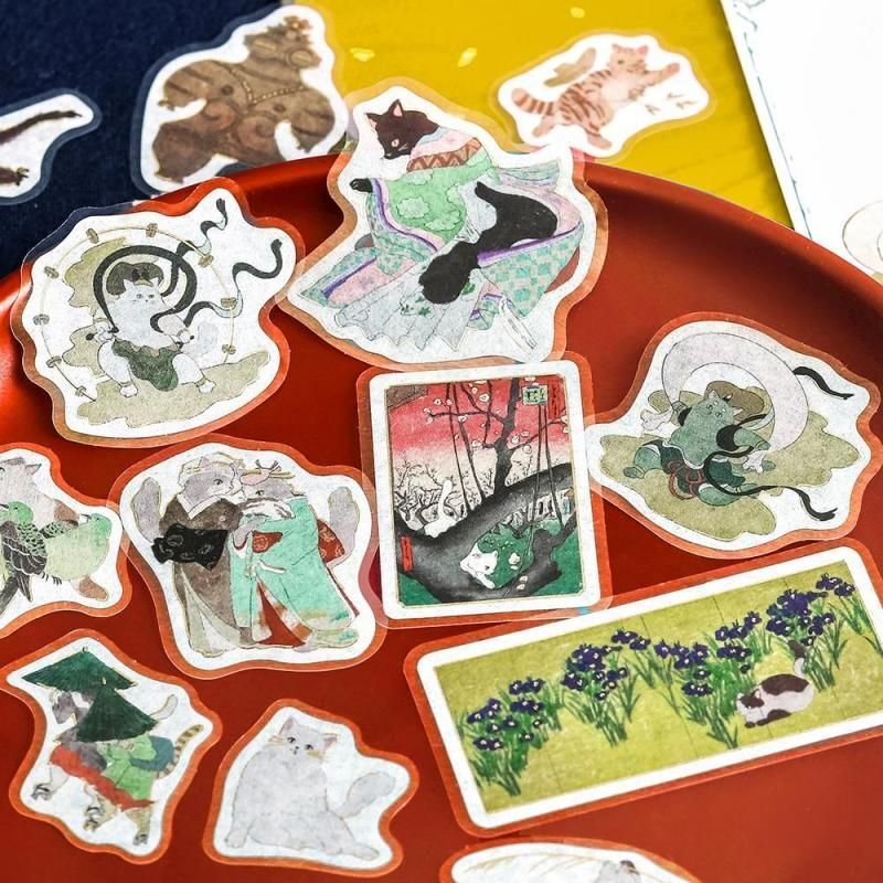 貓咪與日本浮世繪 45入箔押和紙貼紙包 IPPAI |日本BGM