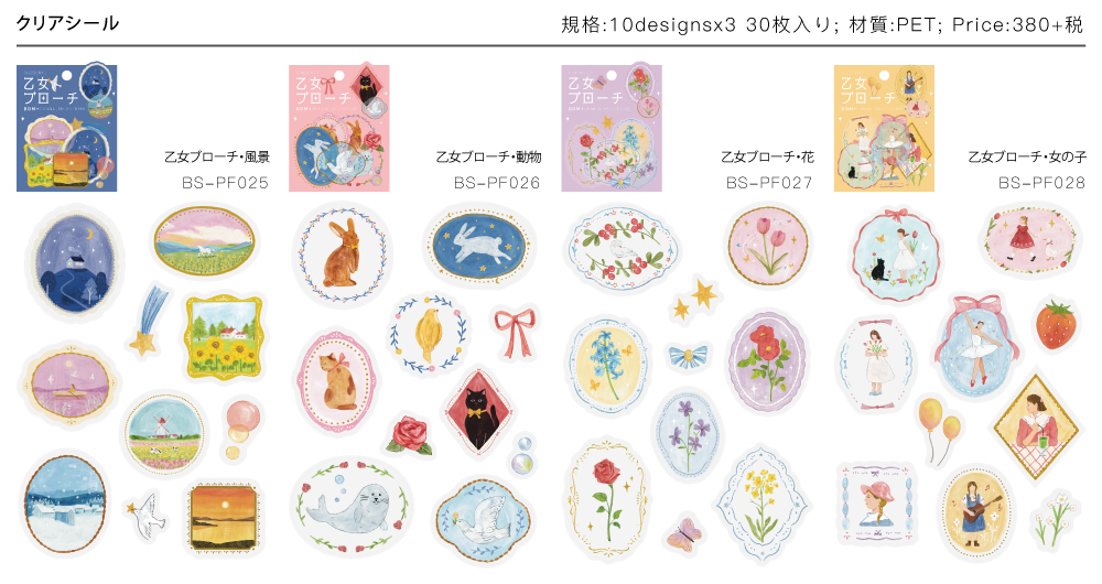 花朵_少女的胸章 30枚 PET貼紙包|日本 BGM