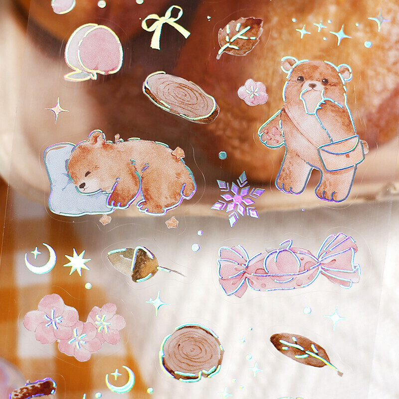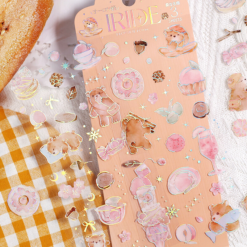 小熊 IRIDE系列 3入箔押PET貼紙|日本 BGM
