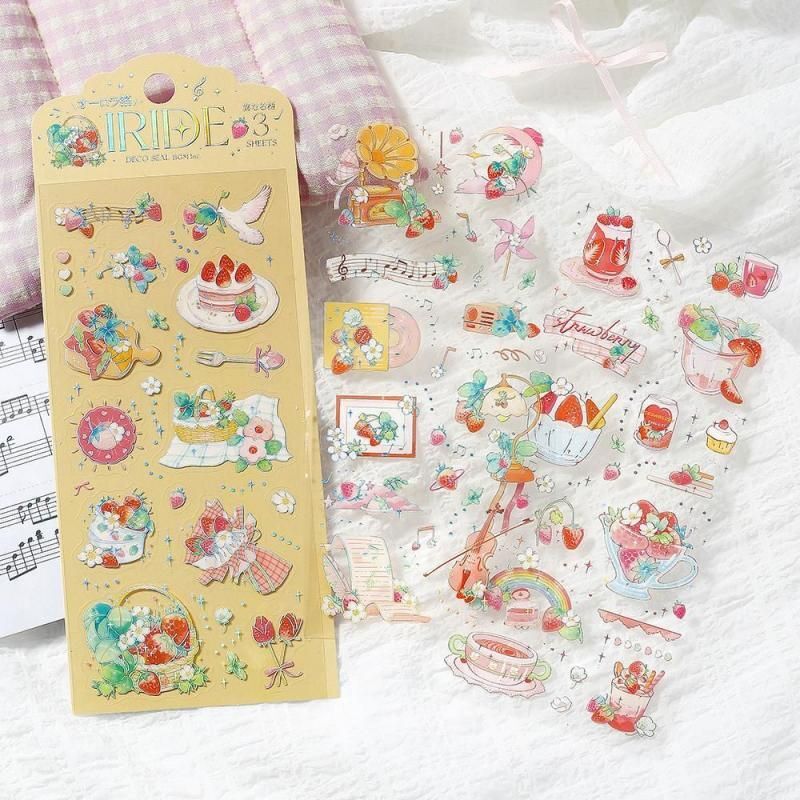 草莓 IRIDE系列 3入箔押PET貼紙|日本 BGM