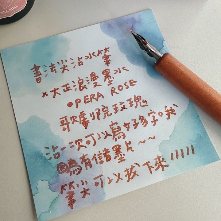 筆尖彎彎的書法尖沾水筆,可以依照提筆角度改變寫出來的線條粗細