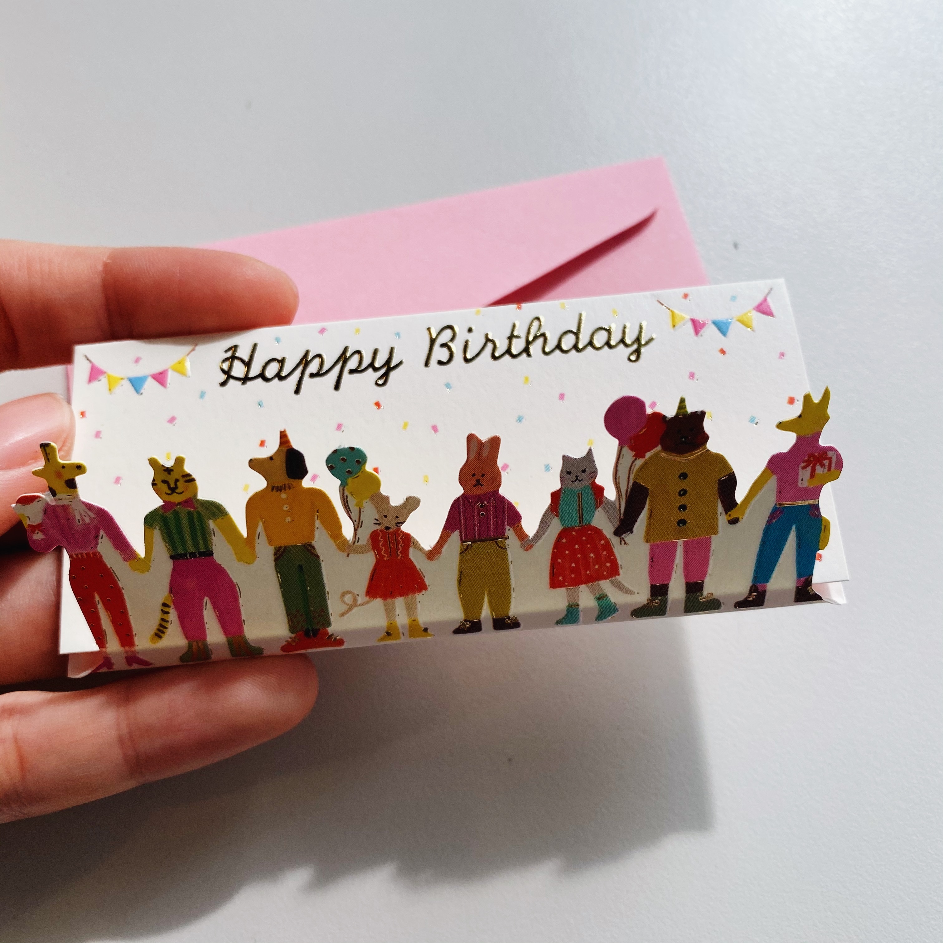 動物朋友手牽手 迷你立體生日卡片 賀卡