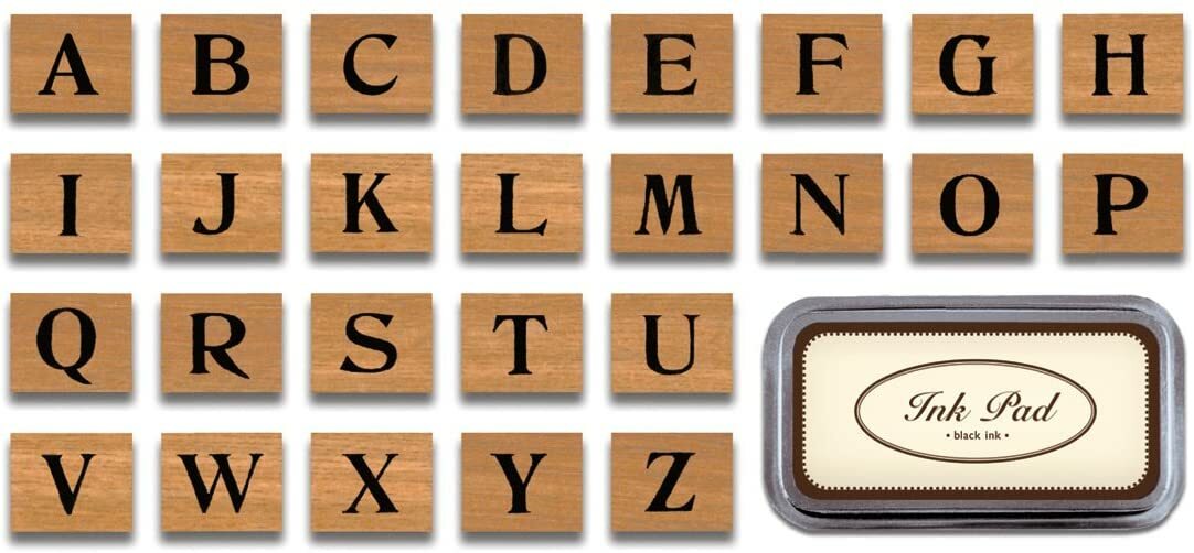 內含 26顆木柄印章,附黑色油性印台
