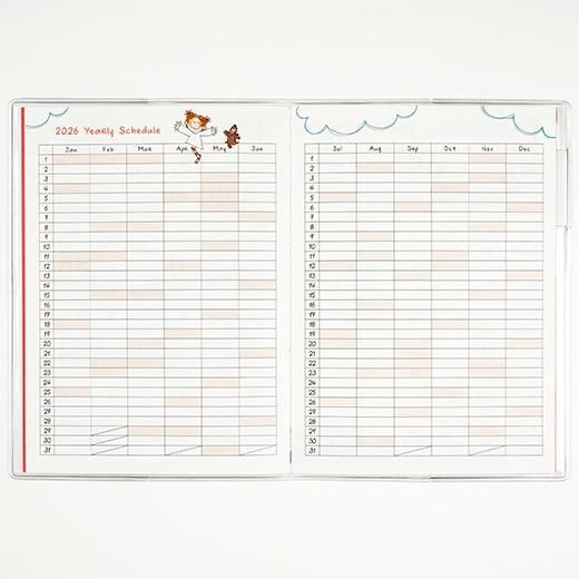 coco醬可愛的A6薄型月計畫。裡面有彩色插圖。還有很多備忘錄頁!