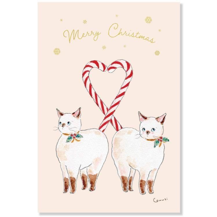 貓咪糖果 TOCOROCOMUGI 箔押 聖誕明信片|日本ACTIVE CORPORATION