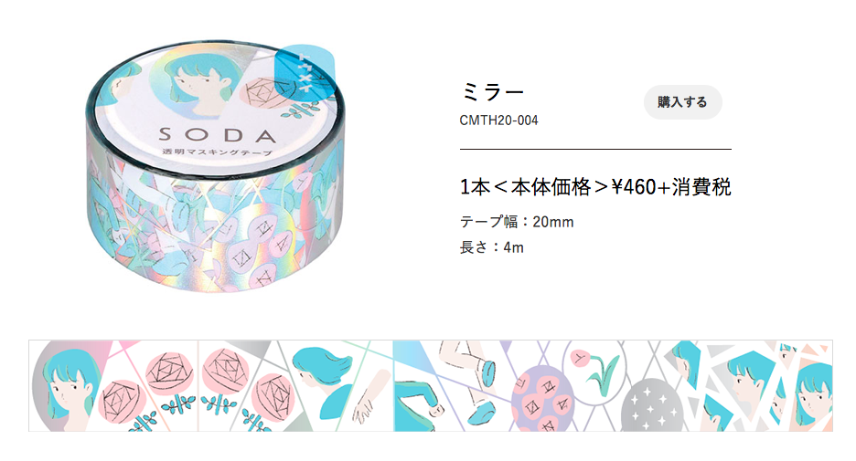 鏡子 Soda透明PET膠帶 箔押款 寬20MM |KING JIM