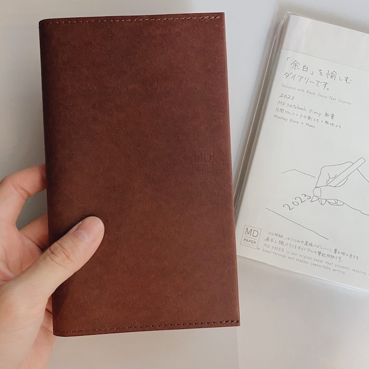 仿皮革質感的紙製書衣,具耐水性,較一般紙質強度高,長期使用也不易破損。