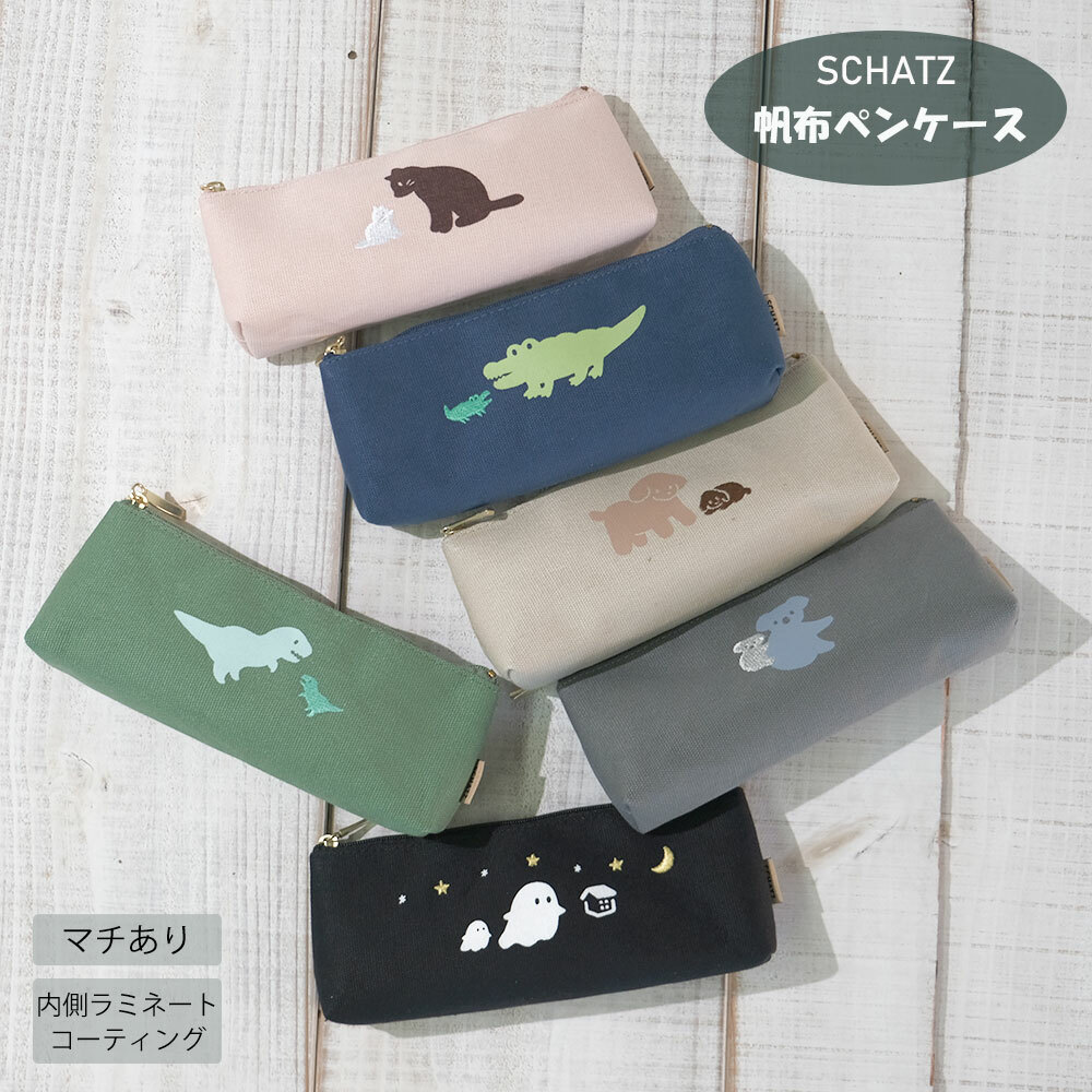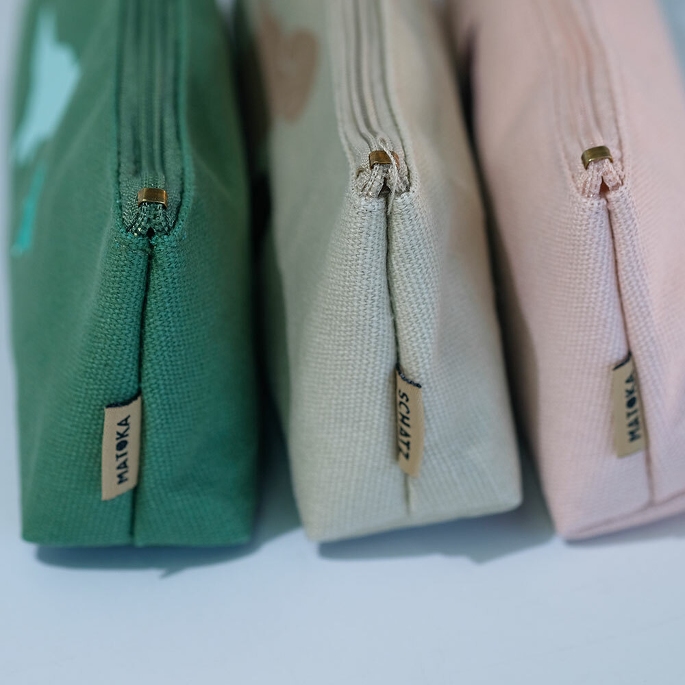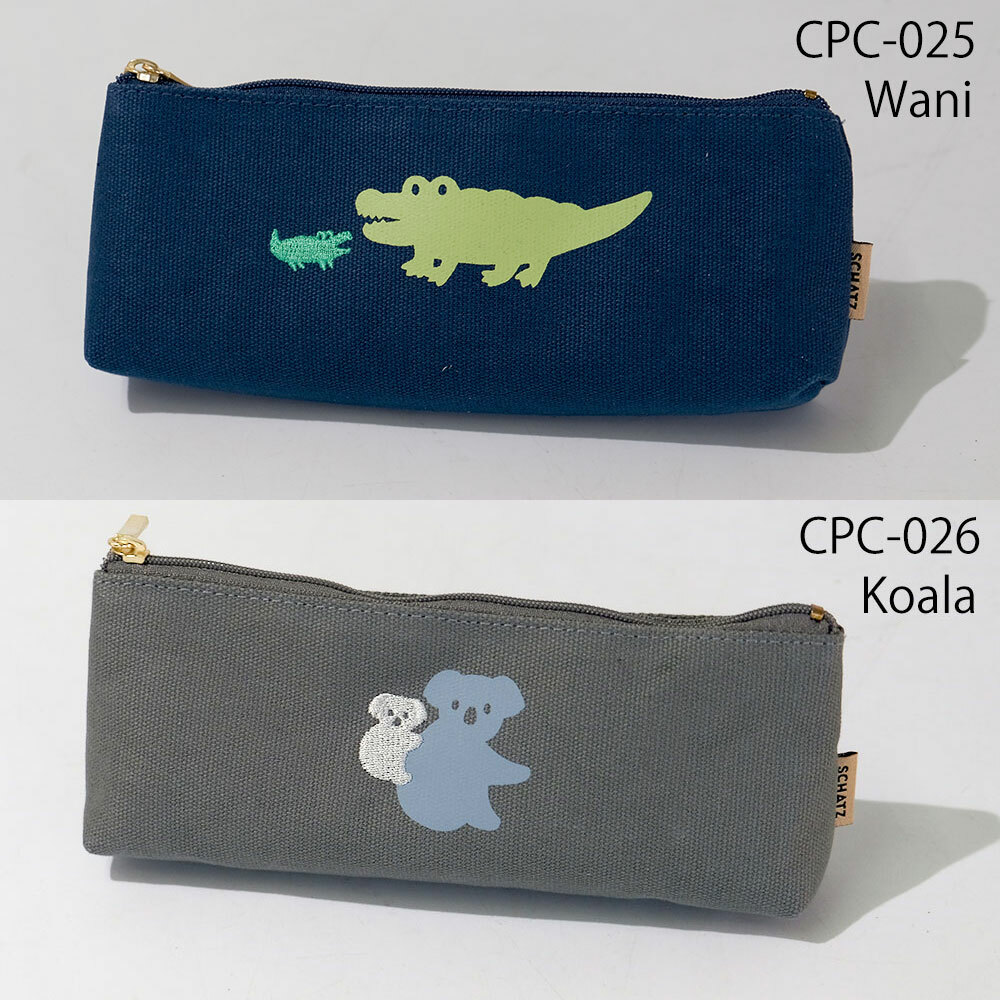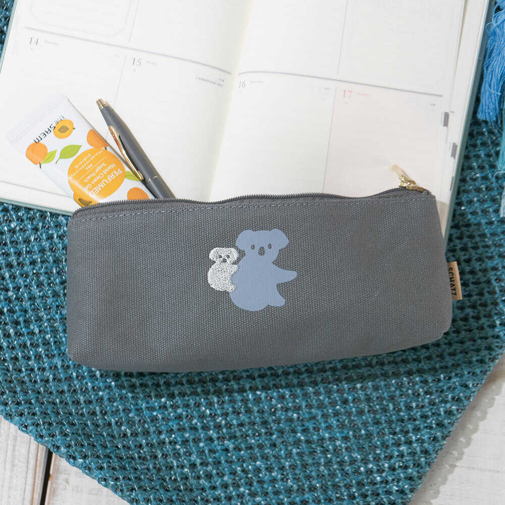 動物印花與刺繡的結合,搭配柔和色系的帆布筆袋
