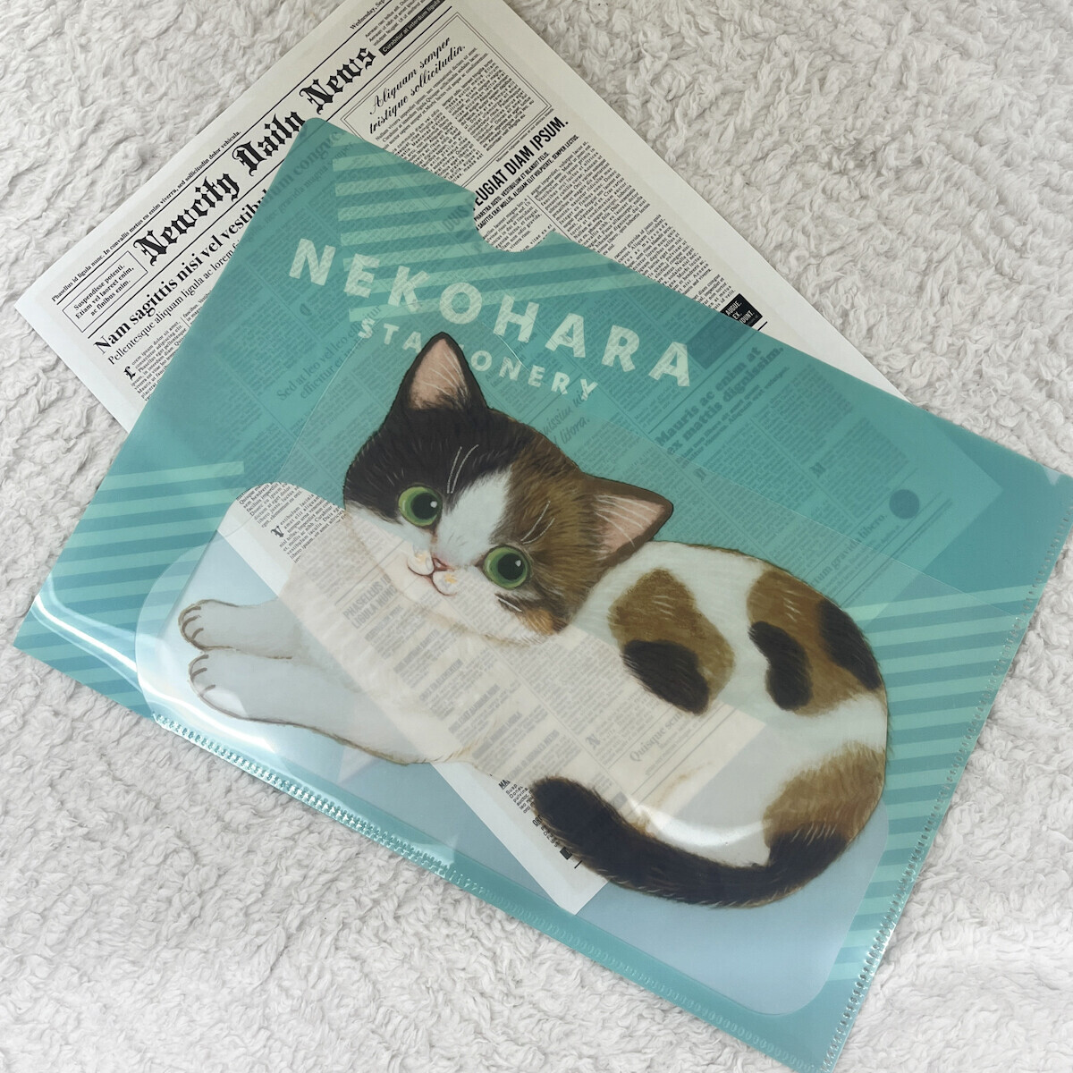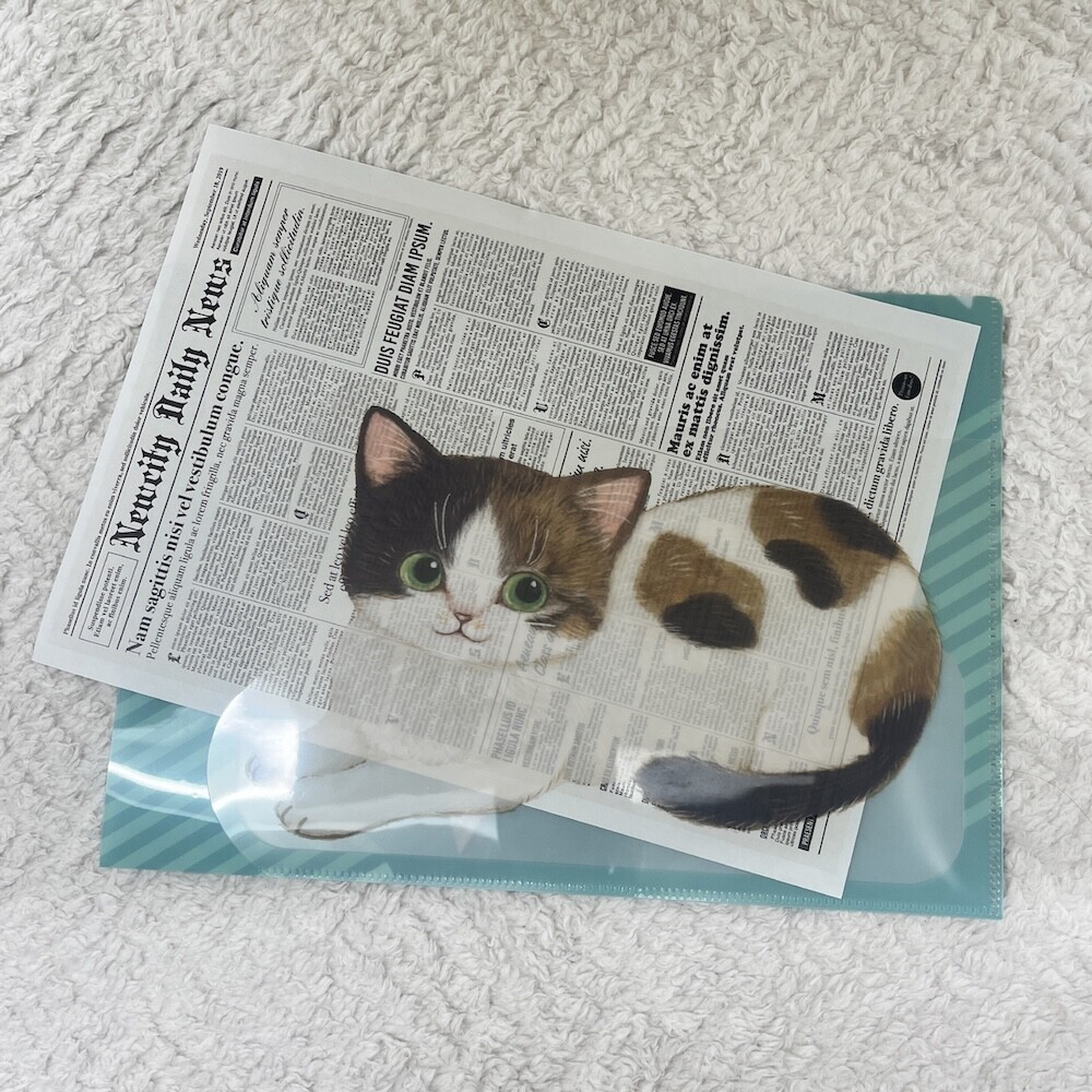 像是一隻小貓咪躺在文件上