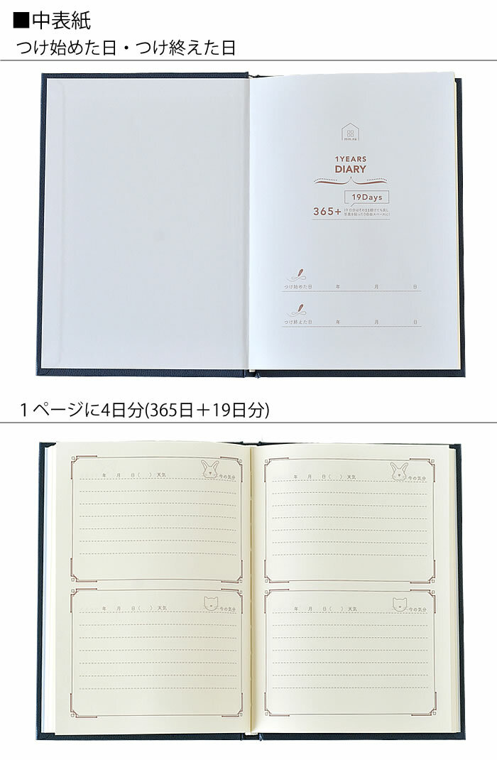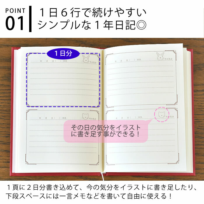 1頁配置了2天份的「1年日記」,總共有384天份(192頁),就算有時候突然想寫很多內容也沒有問題。
