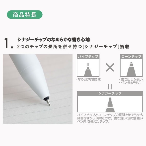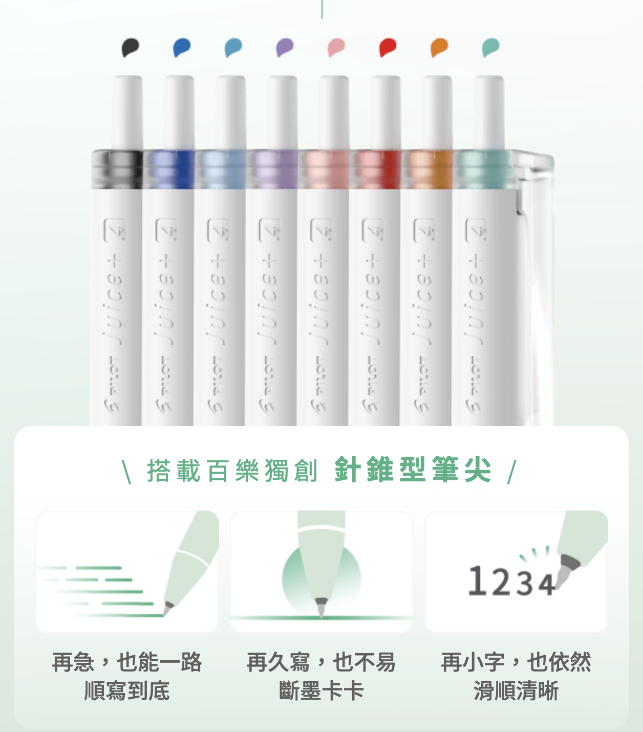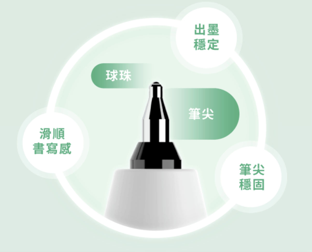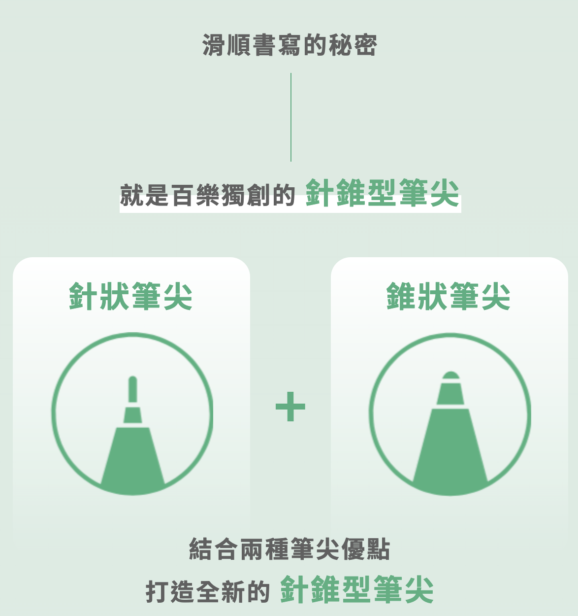 ①搭載「針錐型筆尖」,書寫更滑順、更穩固