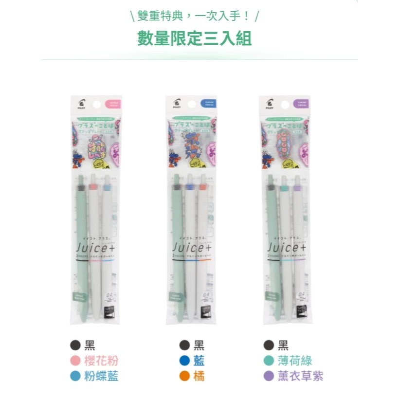 限量3入組 Juice+ plus 進化版果汁筆 0.4 極細字|日本 PILOT 百樂