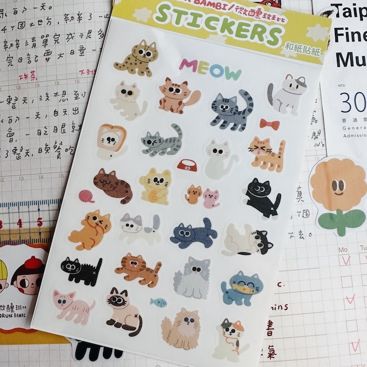 貓咪 和紙小貼紙 手帳貼紙|微醺斑比