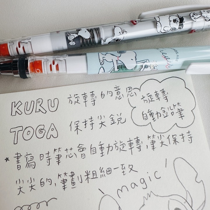 書寫時筆芯會自動360度旋轉,永遠維持尖銳狀