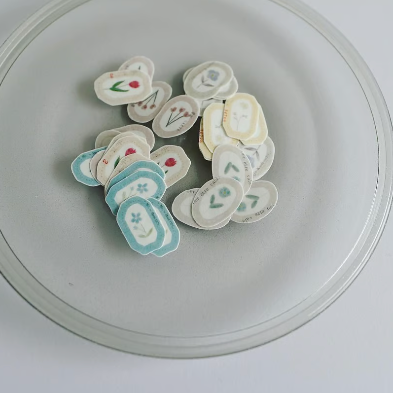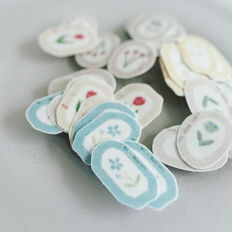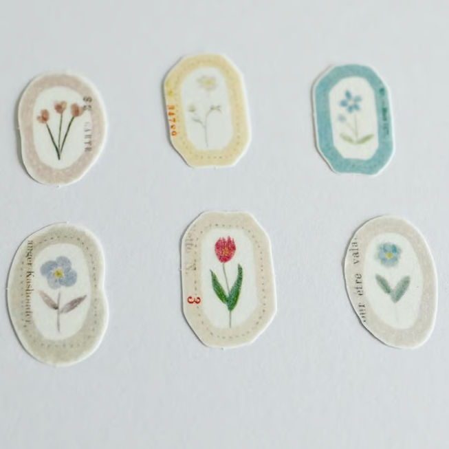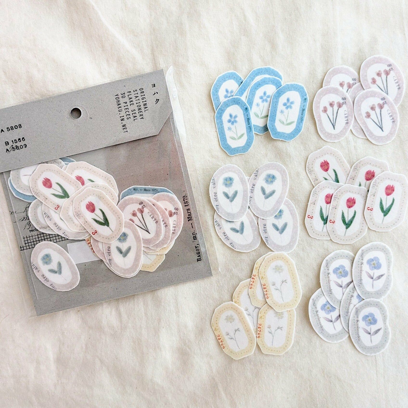 花朵_郵票貼紙 30枚 和紙貼紙包 F-014|日本 yohaku