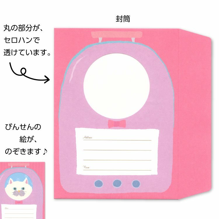 將整張貓咪信紙放入帶有透明窗口的信封,圓形的透明窗會露出可愛的貓頭