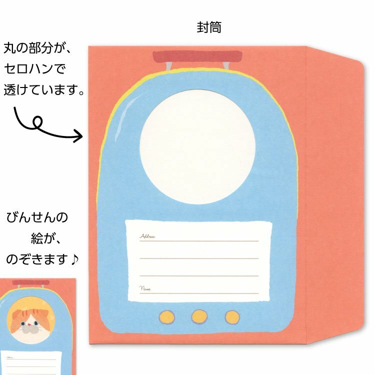 將整張貓咪信紙放入帶有透明窗口的信封,圓形的透明窗會露出可愛的貓頭