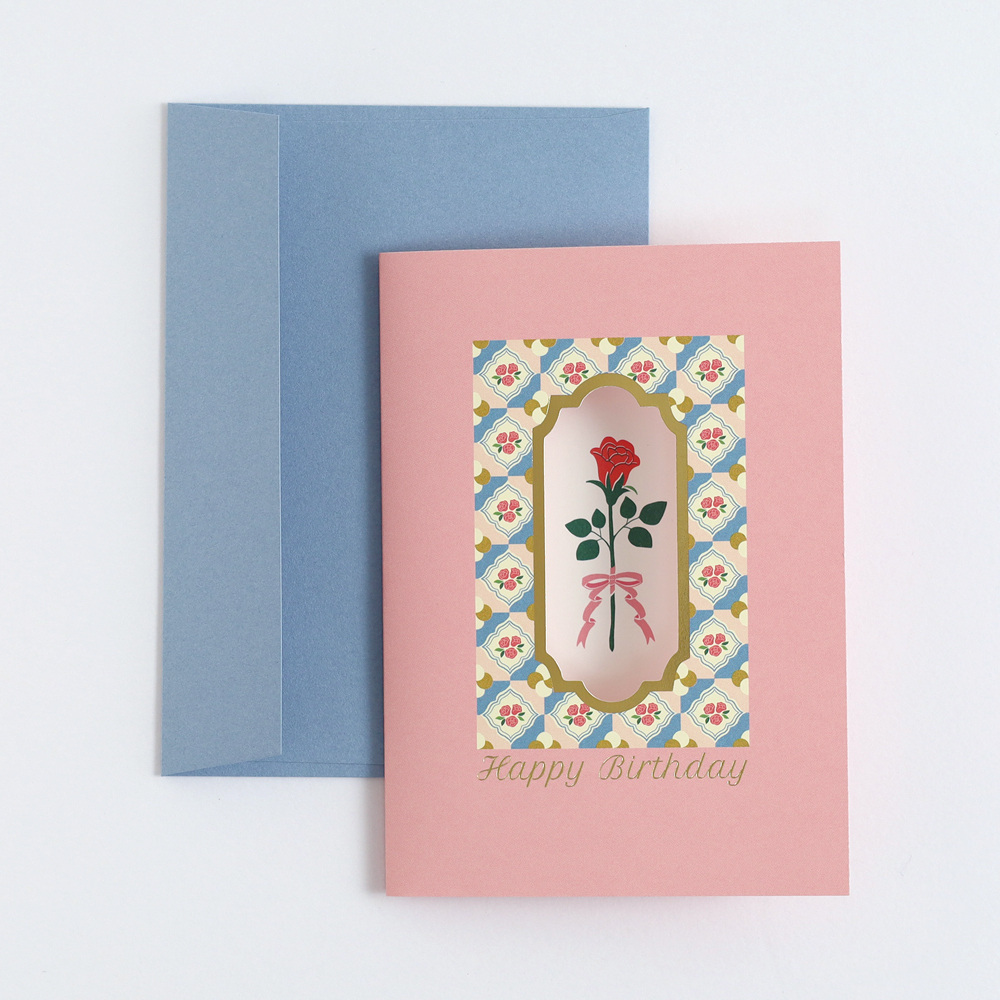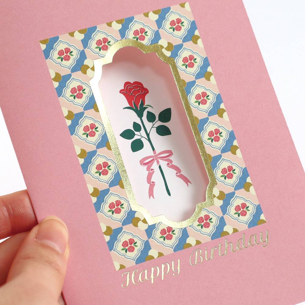 玫瑰 花窗生日卡片 |日本STUDY HOLIC