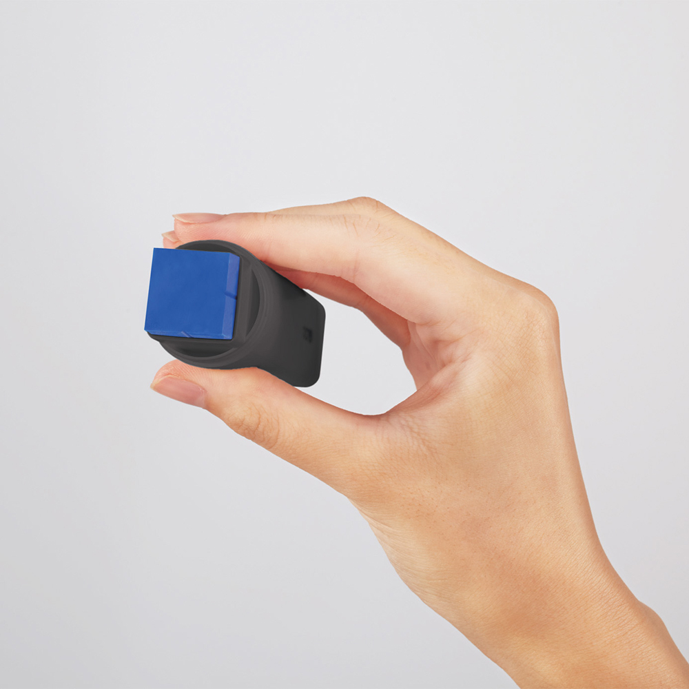 特別加大上蓋外緣部分,作業中單手也能簡單開蓋。平時作業時可將上蓋朝下立放,塗抹結束後只要直接將本體壓入蓋開口中,一隻手就能簡單收好口紅膠,是十分便利的設計。
