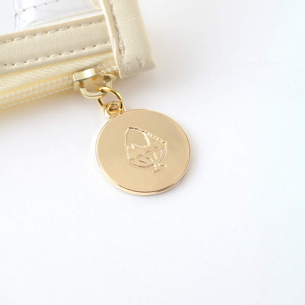 印刷的動物圖案上施以金箔加工,拉鍊採用圖案刻印加工,是動物和其相關主題,很可愛又有趣。