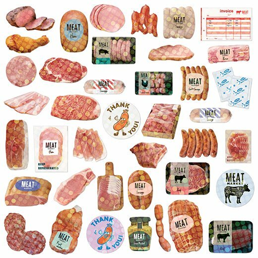 肉品 40枚 紙箱造型貼紙組|日本Greeting Life