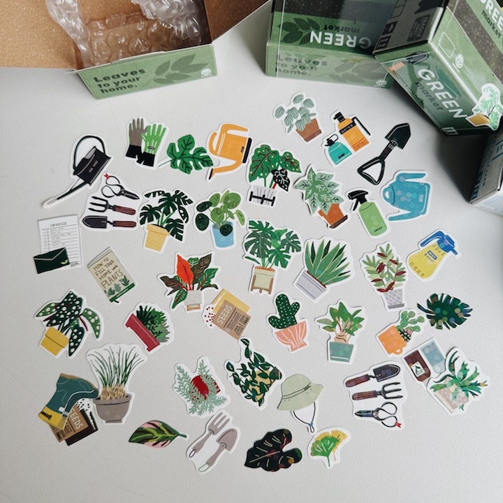 綠色植物 40枚 紙箱造型貼紙組|日本Greeting Life