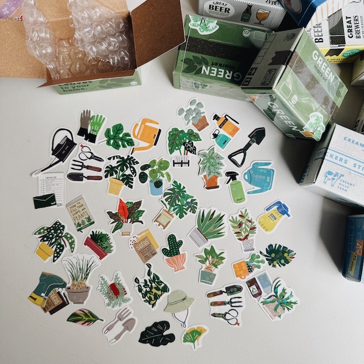 盒子裡大約有40張貼紙,都是不同的圖案!還包括防撞的氣泡袋和送貨單。