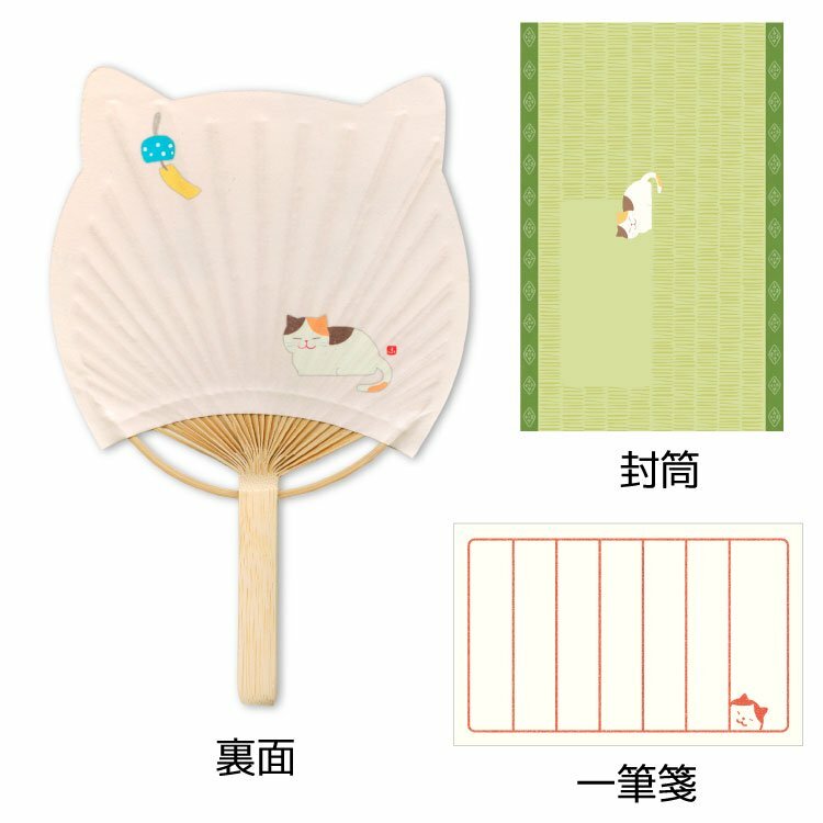 三花貓 竹扇子造型卡片組|日本ACTIVE CORPORATION