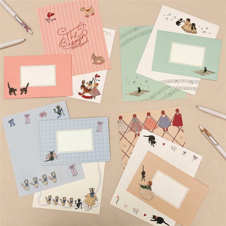 由超人氣繪本作家Kurahashirei繪製的女孩和貓的信紙組。