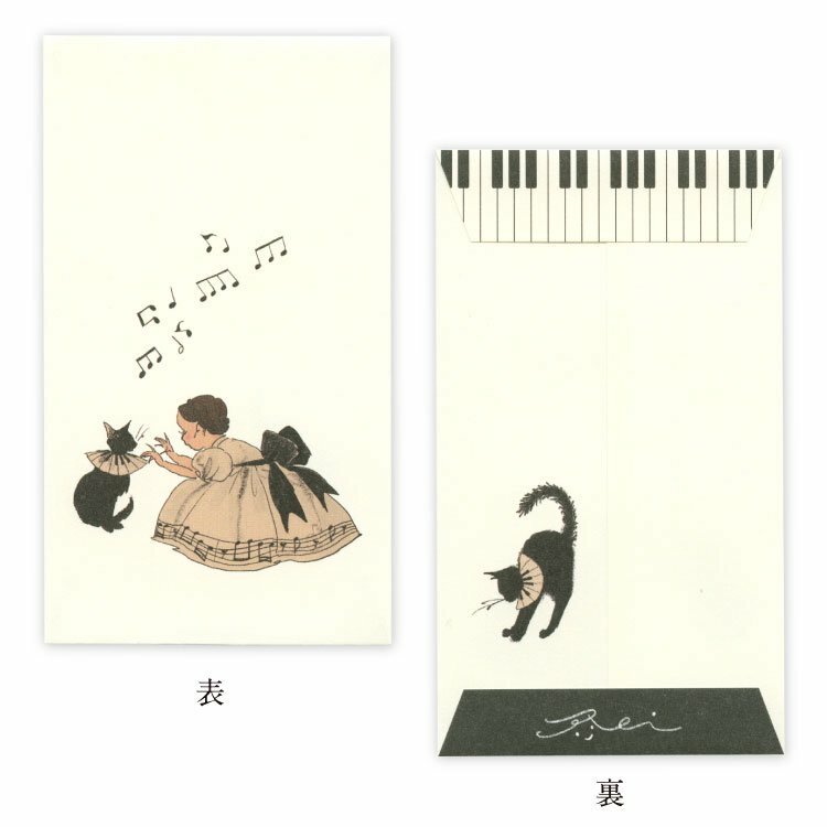 鋼琴 貓與我系列 5枚小信封|日本Kurahashirei