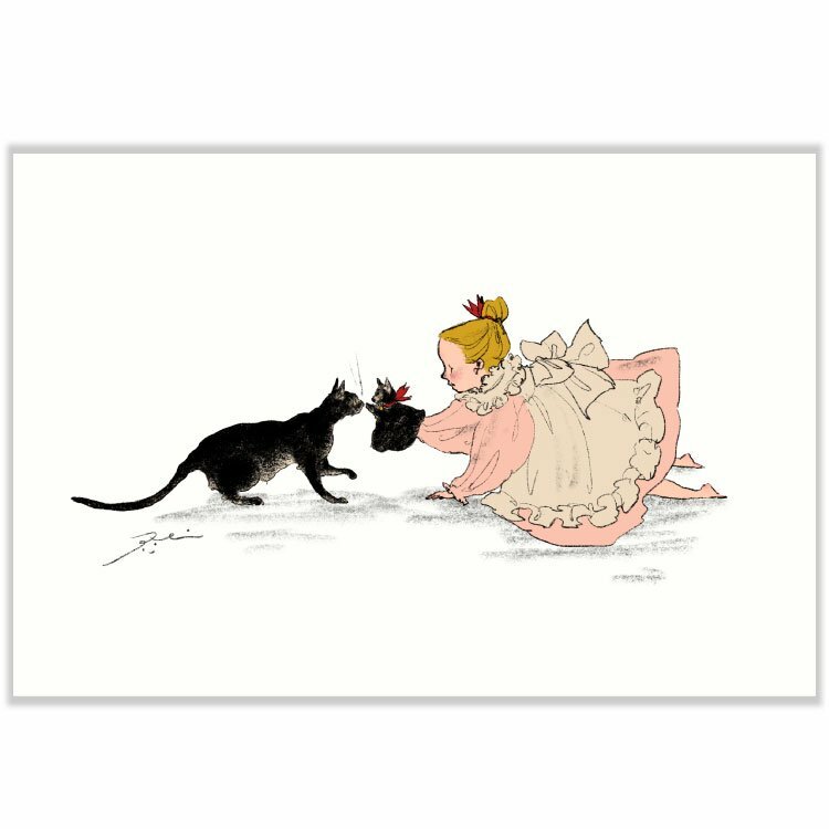 由超人氣繪本作家Kurahashirei繪製的女孩和貓的可愛插畫明信片。