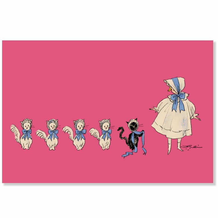 由超人氣繪本作家Kurahashirei繪製的女孩和貓的可愛插畫明信片。