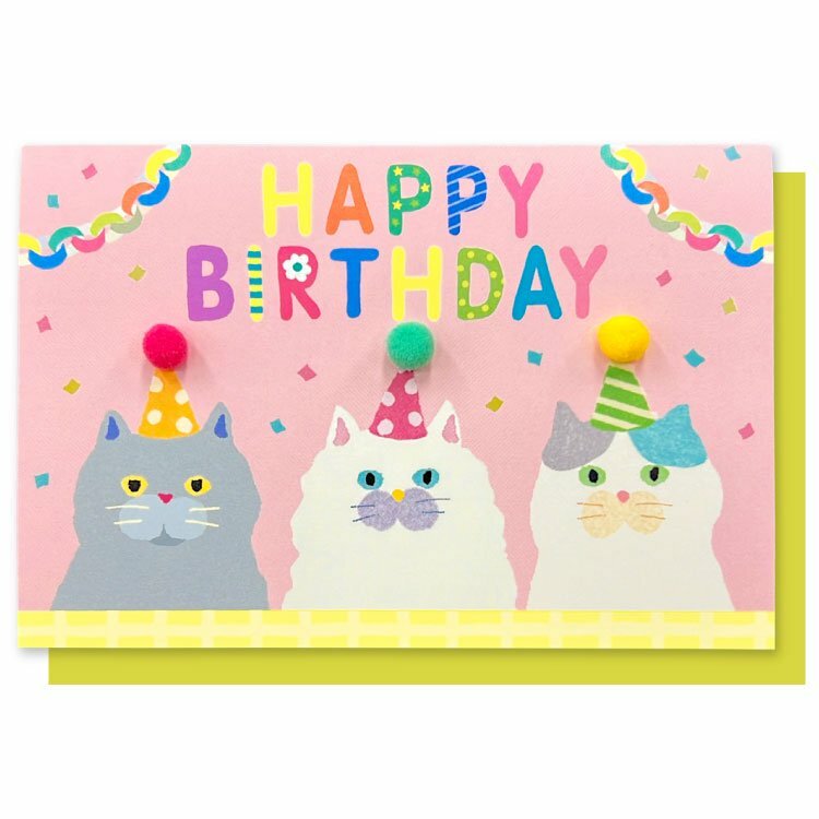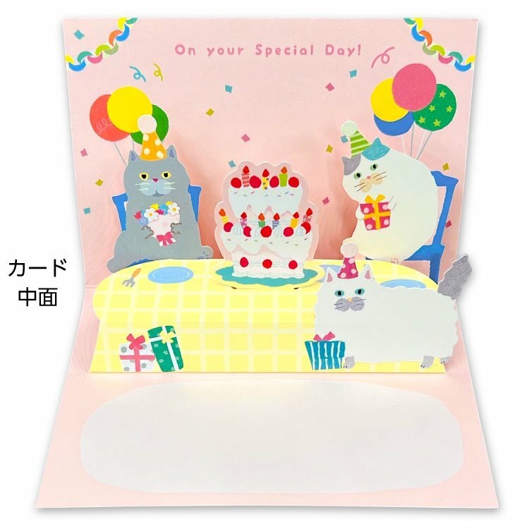 派對 毛茸茸貓咪 立體生日卡片|日本ACTIVE CORPORATION
