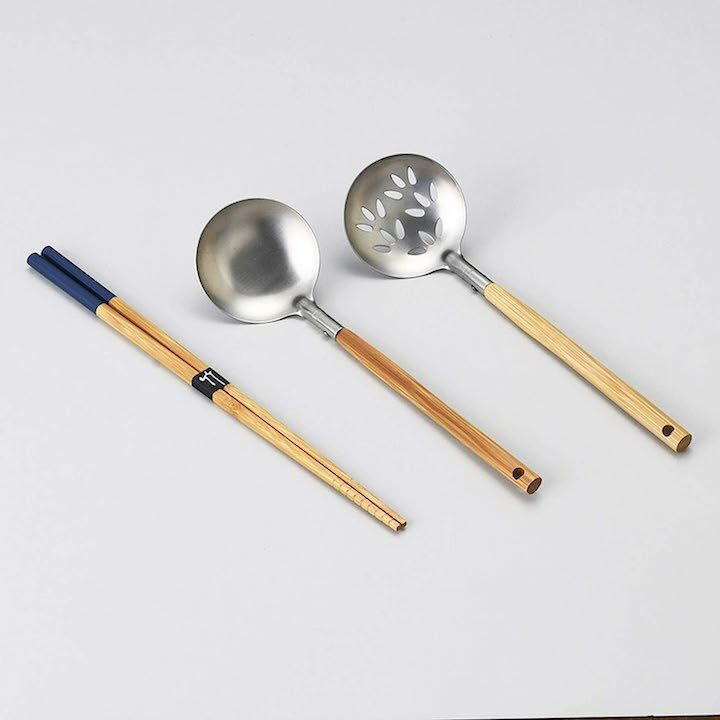一套三件:大湯匙,帶孔的大湯匙,長筷子。