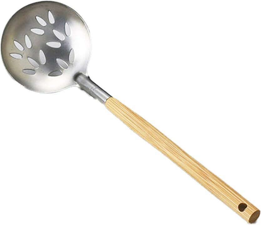 帶竹柄的不鏽鋼湯匙(帶孔)7 x 25cm