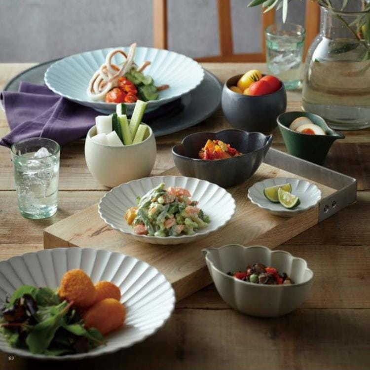 盤緣的花瓣造型,搭配霧面的啞光質感,有著優雅風格,襯托出料理的美味,完美搭配任何風格餐桌。