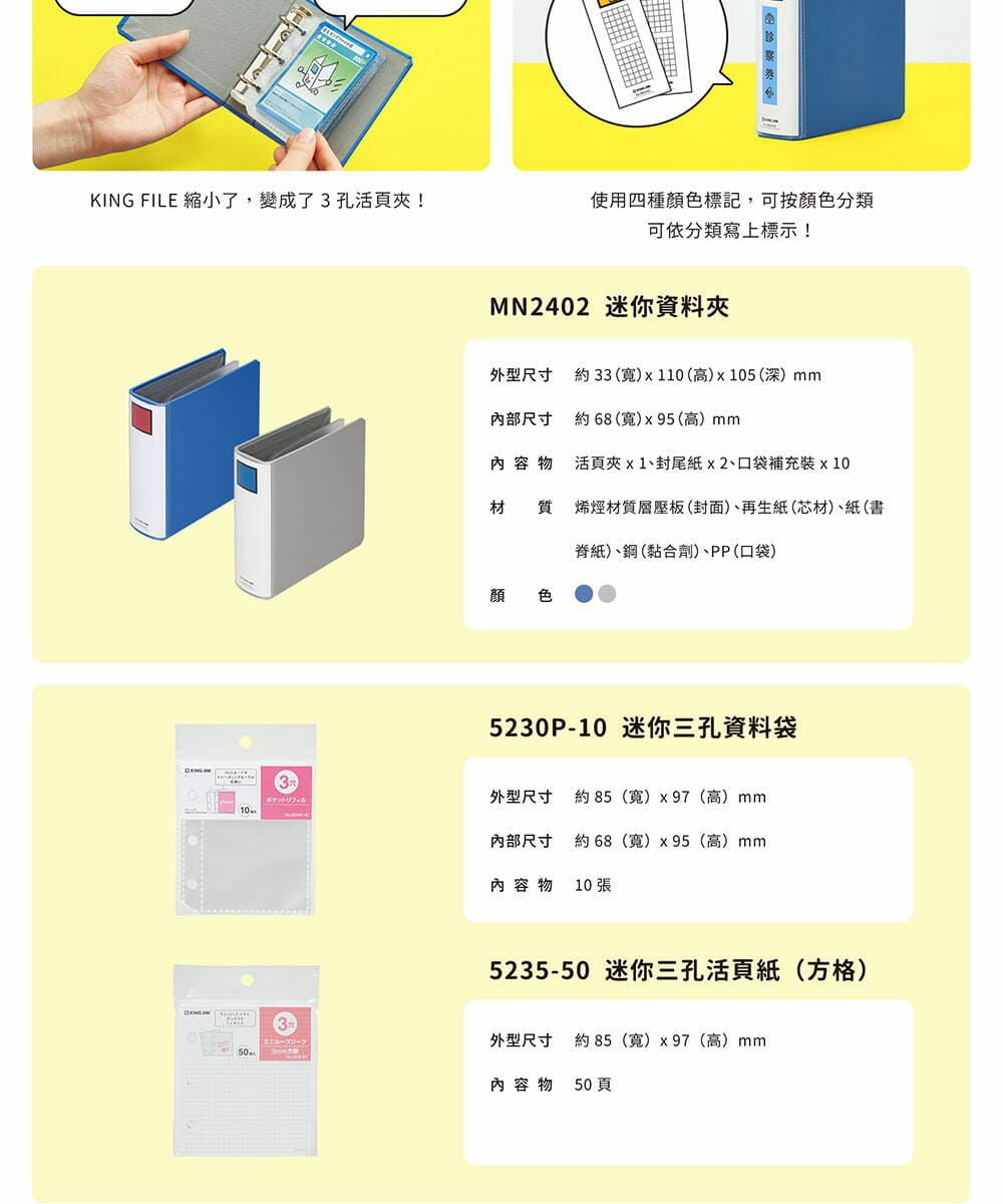 3孔 迷你資料夾專用內袋 透明口袋(10枚)