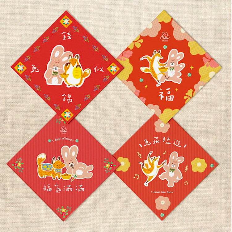 Reiko 兔狐新年 4入 斗方春聯|Hello Studio 你好工作室