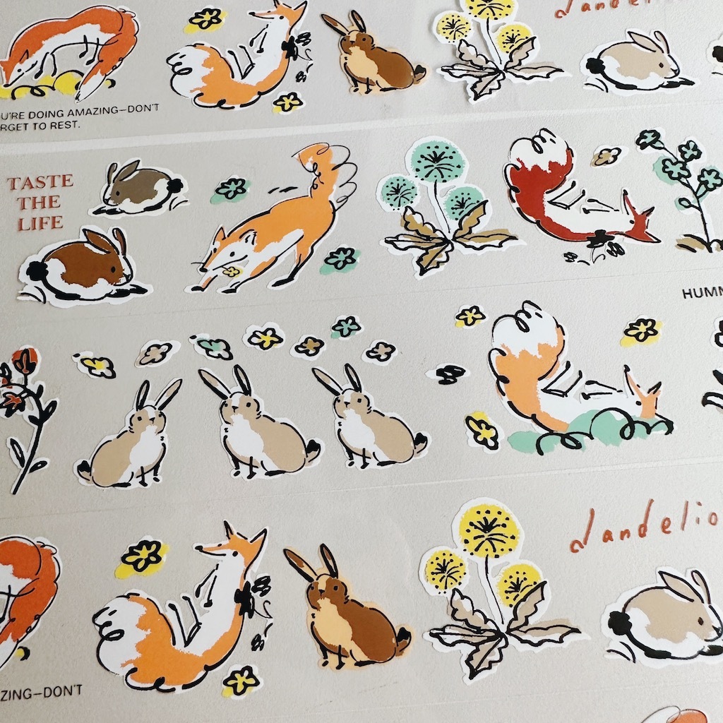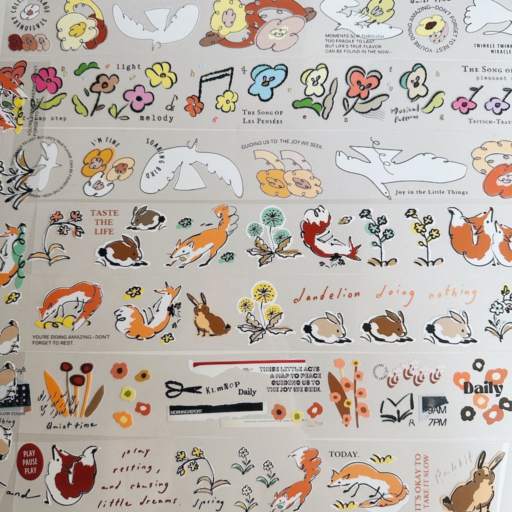 帶給大家如繪本、短篇那樣的氣氛,在草原上發芽的、在天上開展的、在夢裡綻放的故事...這一卷PET tape有很多可愛的狐狸兔子與花,單獨使用他們就好可愛,可是當他們疊加在一起,會構成更有層次的場景感喔!